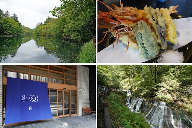 。日本2019 輕井澤美食景點推薦。白絲瀑布、舊三笠飯店、星野溫泉、榆樹小鎮、雲場池、村民食堂、川上庵、高原教會、石之教會
