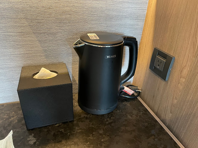 邊桌上有煮水壺,及免費的礦泉水,冰箱還有免費提供的汽水、檸檬汁。